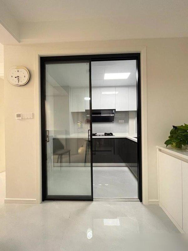 厨房门我选的是极简地轨,当初纠结吊轨还是地轨,装修师傅说“吊轨好看但用久了容易晃,地轨稳固就是得擦轨道”。现在用了两年,轨道上的灰拿小刷子一扫就没,比吊轨那晃来晃去的强多了——楼下邻居家的吊轨门,现在推拉都卡,说是滑轮坏了,换个配件花了三百,他说“早知道选地轨,省得糟心”。