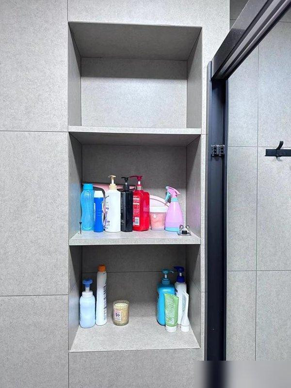 最搞笑的是卫生间壁龛,我朋友家本来卫生间就小,非要砌个壁龛,结果现在洗澡转个身都费劲,壁龛里还总积水,擦都擦不到,里面的沐浴露瓶都发毛了,她后悔得不行,说“早知道装个免打孔置物架,省得占地方还难清理”。可另一个朋友家,包下水管顺便做了个壁龛,放洗漱用品刚好,她说“每次拿洗面奶都不用弯腰,比置物架方便多了”。